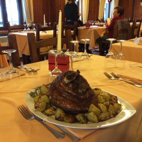 La sala ristorante è particolarmente adatta per banchetti e cerimonie, oltre a mettere a disposizione il servizio self-service, utile nei mesi invernali tra una sciata e l’altra.